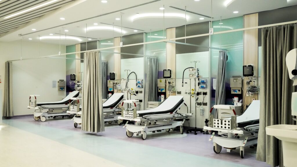 Features include anti-slip surfaces and chemical resistance, perfect for hospitals, labs, and modern healthcare facilities.