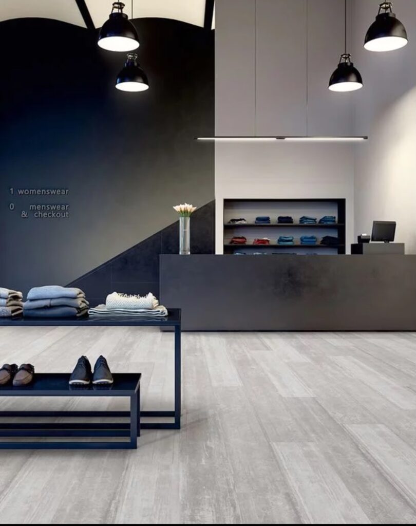 High-quality vinyl flooring from IDEAL FLOORS meets international environmental standards (VOC A+ / Floorscore), ensuring low emissions and a safe indoor environment for shoppers and employees. Its antibacterial properties contribute to a cleaner and healthier commercial space.